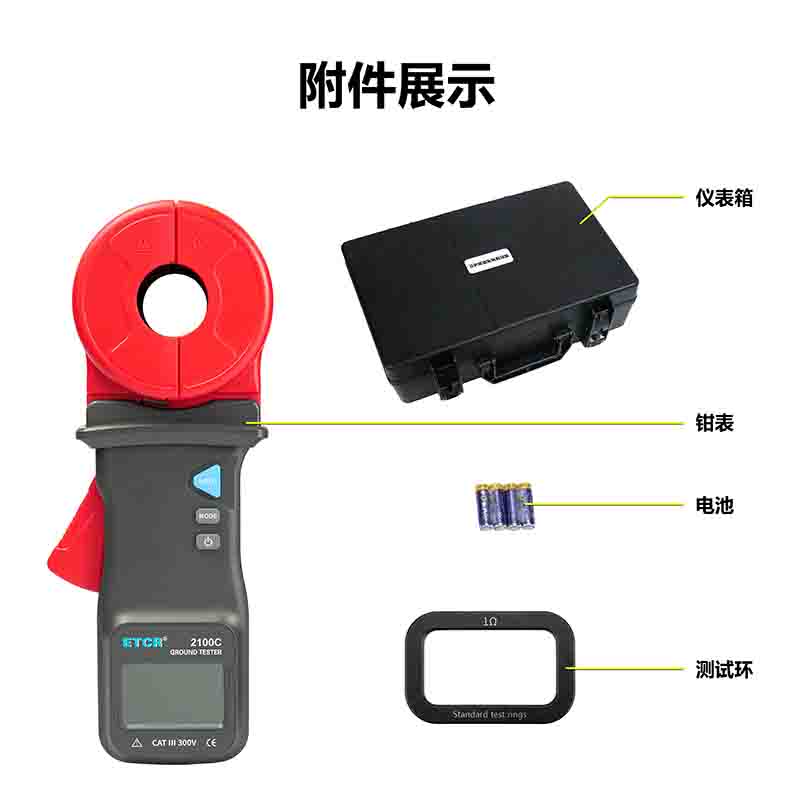 | ETCR2100C鉗形接地電阻儀 | Φ32mm | 0.010Ω~1000Ω | 0.00mA~30A | 有 | 99組 | -- |