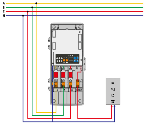 5、具有自動旁路功能,當(dāng)輸入相的熔斷器熔斷,換相器將停止換相,并自動將負載切換到有電相,保持用戶供電,更換熔斷器后,換相裝置即可恢復(fù)正常運行。