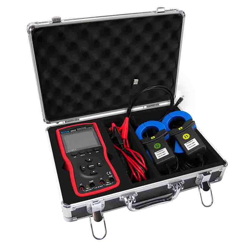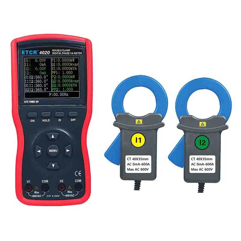 ETCR4020大口徑雙鉗數(shù)字相位伏安表又稱單相相位伏安表、數(shù)字相位伏安表、伏安相位儀、相位測(cè)量?jī)x,用于測(cè)量?jī)陕方涣麟妷?、電流、電壓間相位、電流間相位、電壓電流間相位、頻率、相序、有功功率、無(wú)功功率、視在功率、功率因數(shù)等,判別變壓器接線組別、感性、容性電路,測(cè)試二次回路和母差保護(hù)系統(tǒng),讀出差動(dòng)保護(hù)各組CT之間的相位關(guān)系,檢查電度表的接線正確與否,檢修線路設(shè)備等,為用電檢查人員提供一種安全、準(zhǔn)確、便捷的新型電力儀表。尤其適用于電能計(jì)費(fèi)系統(tǒng)及繼電保護(hù)系統(tǒng),其供電營(yíng)銷部門的電能計(jì)量、用電檢查、電力稽查,生技部門的裝表接電 、繼電保護(hù)、差動(dòng)檢測(cè)、啟動(dòng)試驗(yàn)、變電檢修,或電力實(shí)訓(xùn)、技能比武等。