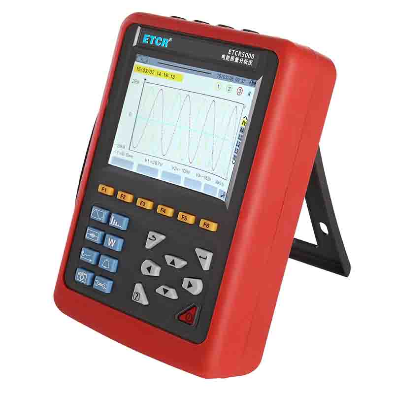 ETCR5000電能質(zhì)量分析儀又稱電力質(zhì)量分析儀、電力參數(shù)測試儀、諧波分析儀,是一款專為現(xiàn)場測試三相電能參數(shù)的多功能、智能化綜合型測試儀器??赏瑫r測量4路電流(ABC三相及中性線電流),4路電壓(ABC三相電壓及中性線對地電壓)、電流電壓的峰值、一段時間內(nèi)的最大最小值、三相不平衡度、短時電壓閃變、變壓器K因數(shù)、有功功率、無功功率、視在功率、功率因數(shù)、位移功率因數(shù)、有功電能、無功電能、視在電能、諧波比、總諧波失真度等;顯示電流電壓的實時波形、相量圖、諧波比柱形圖;動態(tài)捕捉電壓電流瞬時變化,監(jiān)測啟動電流,監(jiān)測各電力參數(shù)并生成告警列表,長時間記錄測試數(shù)據(jù)并生成趨勢曲線圖等功能。適用于電力、石化、冶金、鐵路、工礦企業(yè)、科研院校、計量部門等。