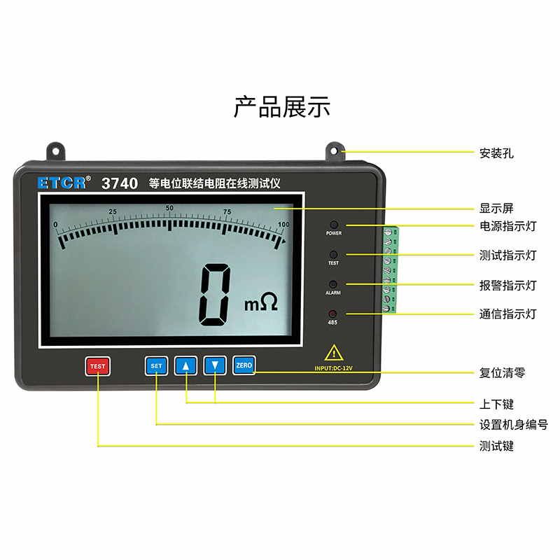 ETCR3740等電位聯(lián)結(jié)電阻在線(xiàn)監(jiān)測(cè)儀采用微處理機(jī)技術(shù),四線(xiàn)法測(cè)試,安全精密可靠,測(cè)試儀提供485通訊或4G通訊方式,用戶(hù)可根據(jù)MODBUS通訊協(xié)議進(jìn)行二次開(kāi)發(fā)、組建網(wǎng)絡(luò)、實(shí)現(xiàn)遠(yuǎn)程多點(diǎn)在線(xiàn)監(jiān)測(cè)。測(cè)試儀采用大屏LCD顯示,可設(shè)置測(cè)試參數(shù),在現(xiàn)場(chǎng)查看當(dāng)前直流電阻值。儀表具有聲光報(bào)警功能,可設(shè)置報(bào)警臨界值。測(cè)試儀安裝簡(jiǎn)單,結(jié)構(gòu)緊湊,安全耐用。
