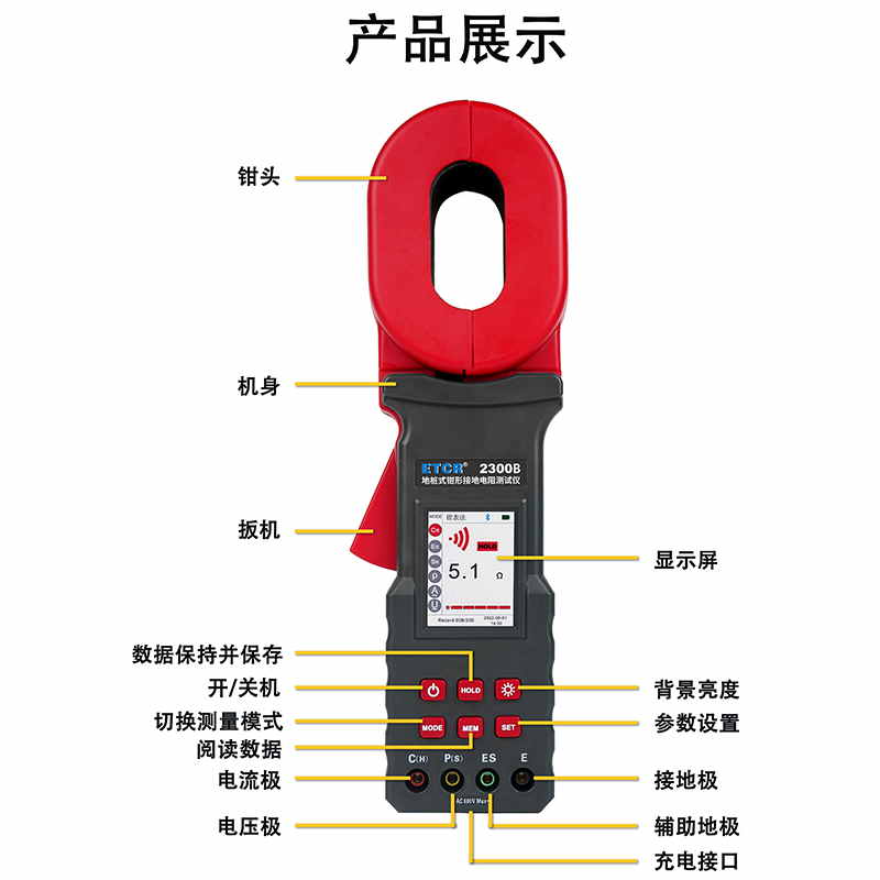 ETCR2300B地樁式鉗形接地電阻表采用大口徑電流鉗設(shè)計(jì),可應(yīng)對各種場合的測試需求,可測量大尺寸接地引下線的接地電阻值,可測量單點(diǎn)和網(wǎng)狀接地等各種復(fù)雜接地結(jié)構(gòu)的接地電阻值,測量并聯(lián)接地系統(tǒng)時無需斷開任何并聯(lián)接地極,極大地提高了測量的方便性,為接地性能測試提供了完美的解決方案。