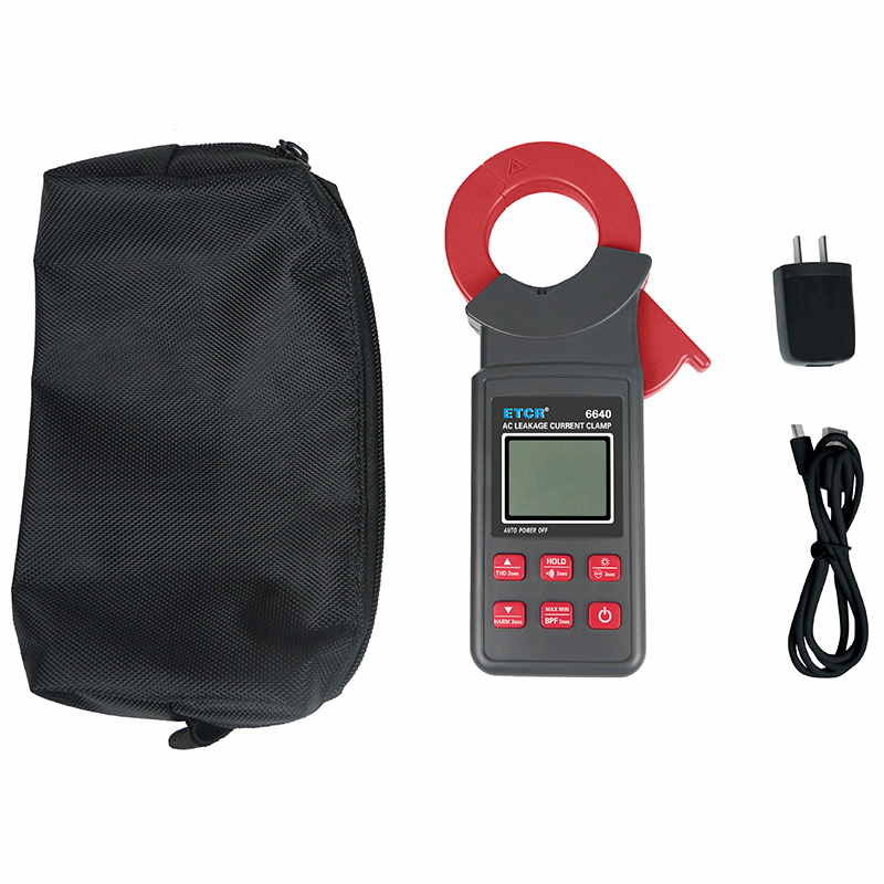 ETCR6640鉗形漏電流表又稱鉗形漏電流測試儀、鉗形電流表、多功能鉗形泄漏電流表、地線電流測試儀,用于交流漏電流、交流電流測量,鉗表具有真有效值測量、濾波功能、最大值/最小值/平均值、諧波、畸變率等測試功能。鉗表傳感鐵芯采用坡膜合金及雙層蔽技術,幾乎不受外界電磁場的影響,確保了常年無間斷測量的高精度、高穩(wěn)定性、高可靠性。廣泛適用于電力、通信、氣象、鐵路、油田、建筑、計量、科研教學單位、工礦企業(yè)等領域。