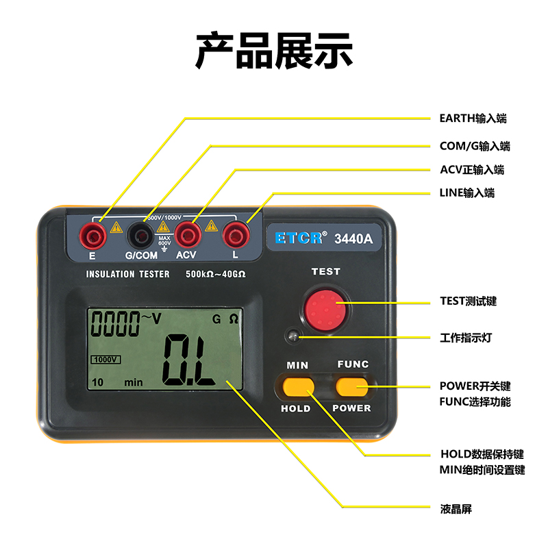 ETCR3440A絕緣電阻表500V、1000V0.5MΩ~40GΩ1mA MAXAC:0V~600V