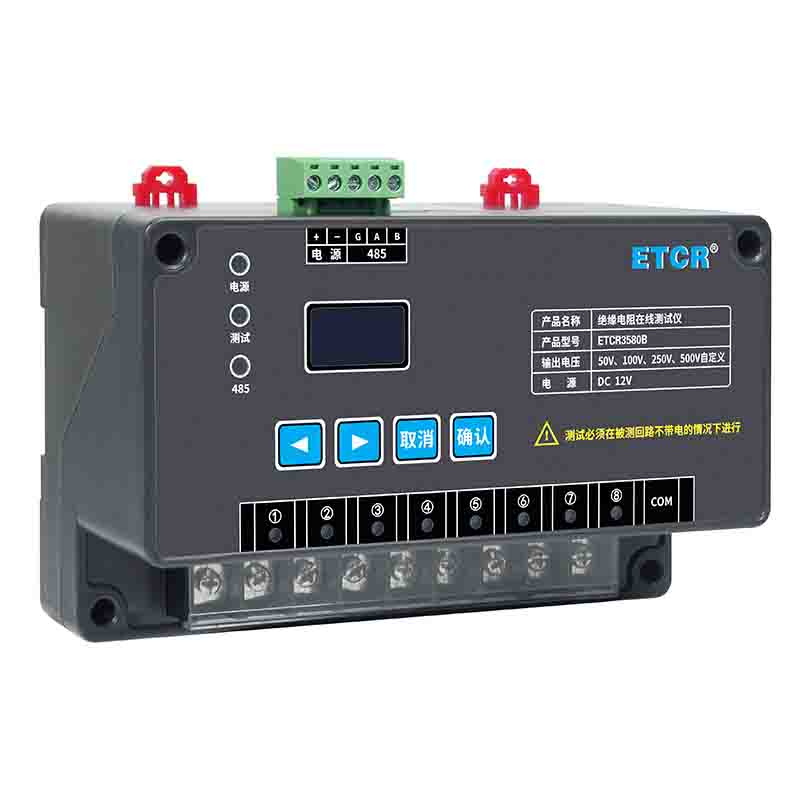 ETCR3580B絕緣電阻在線監(jiān)測儀又稱絕緣電阻在線測試儀,用于在線監(jiān)測電纜、電機、開關、電器等各種電器設備及絕緣材料的絕緣電阻值。監(jiān)測儀采用高清晰OLED液晶屏,測試參數可在儀器按鍵或后臺設置,安裝方便,測試可靠。監(jiān)測儀可監(jiān)測1~8個回路的絕緣電阻值,測試必須在被測回路不帶電的情況下進行。
