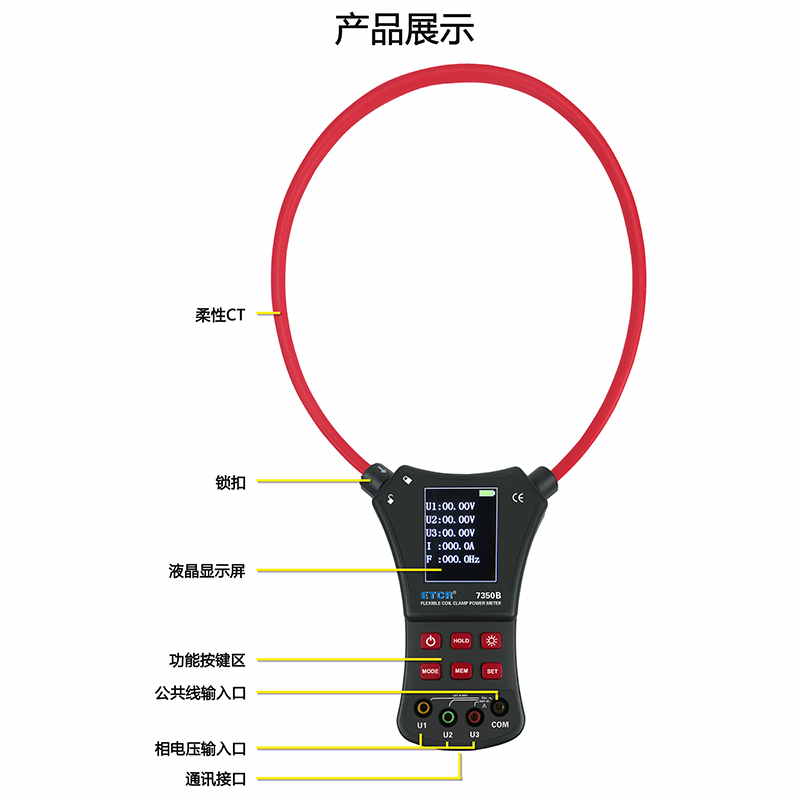 | ETCR7350柔性鉗形功率表 | AC 0.0A~6000A | 0.00V~600V | 0.0°~360° | Φ200mm | 200組 |