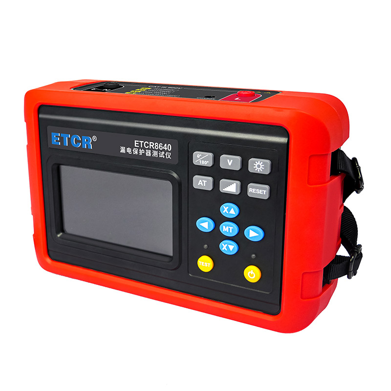ETCR8640漏電保護(hù)器測試儀采用4.3寸彩屏。輸出電流、動(dòng)作時(shí)間、電池電量、相位等同屏顯示,具有自動(dòng)關(guān)機(jī)、相位選擇、背光選擇等功能,儀表操作簡便,精度高、體積小、重量輕、外觀精致,便于攜帶,是各種漏電保護(hù)器現(xiàn)場或室內(nèi)檢測的理想工具。
