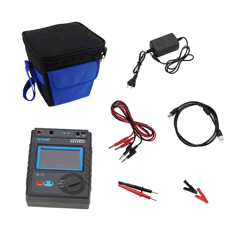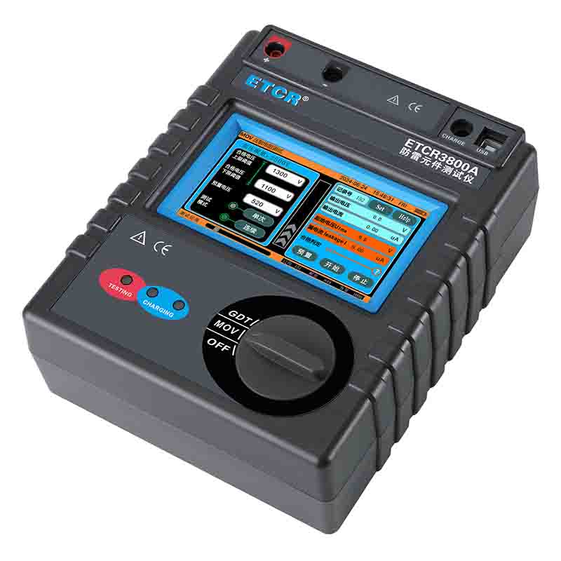 ETCR3800A智能型防雷元件測(cè)試儀又稱防雷元件測(cè)試表、SPD現(xiàn)場(chǎng)測(cè)試儀、壓敏電阻測(cè)試儀、浪涌保護(hù)器測(cè)試儀,用于測(cè)量各種壓敏電阻(MOV)、氣體放電管(GDT)、浪涌保護(hù)器(SPD)性能參數(shù)測(cè)試,儀表具有獨(dú)特的高壓短路保護(hù)、過(guò)流保護(hù)功能,專業(yè)級(jí)的參數(shù)設(shè)置功能、高壓限值設(shè)定、升壓速度設(shè)定、合格范圍設(shè)定、合格判斷篩選、自動(dòng)量程調(diào)節(jié)等功能。還具有單件測(cè)試模式、連續(xù)測(cè)試模式功能,特別適合批量元件測(cè)試。儀器廣泛用于避雷器、防雷器、浪涌保護(hù)器、壓敏電阻、金屬陶瓷放電管、真空避雷管等過(guò)壓防護(hù)元件性能參數(shù)的測(cè)試。是氣象防雷、電力、通信、機(jī)電安裝和維修、防雷元件生產(chǎn)廠家、以及工業(yè)企業(yè)部門常用必備的儀表。