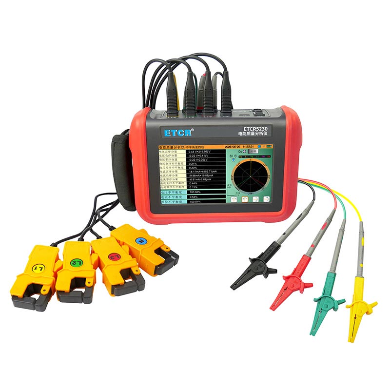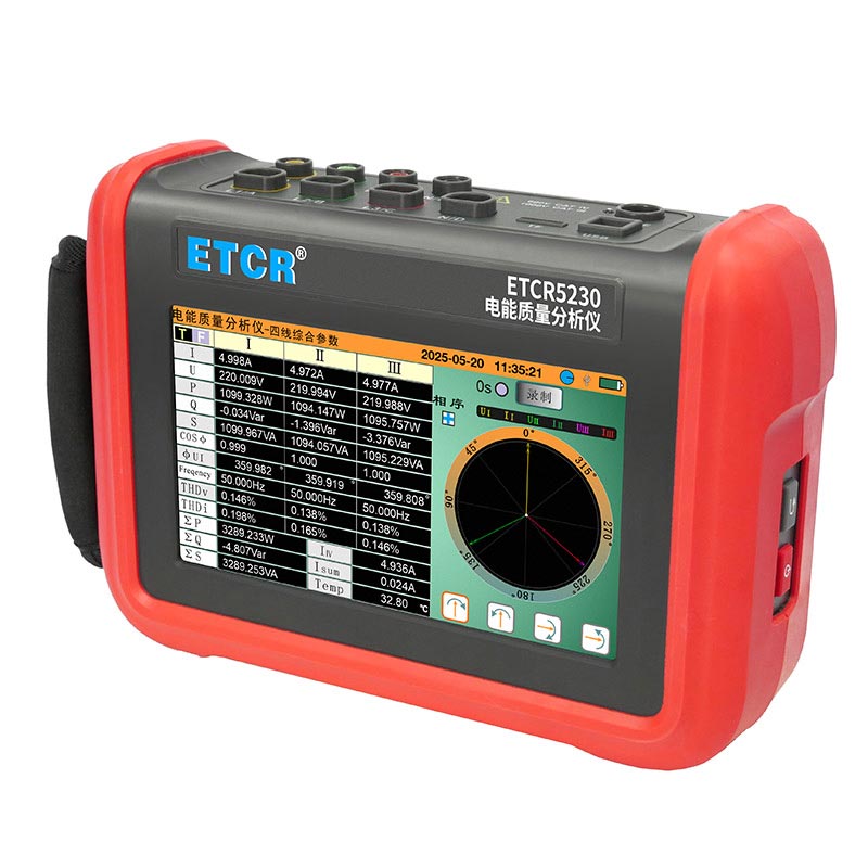 ETCR5230電能質(zhì)量分析儀是我公司精心研制的一款專為現(xiàn)場測試三相電能質(zhì)量的高精度綜合型測試儀器。儀表具有智能化、功能完善、人機(jī)操作簡潔、中英文雙語操作界面等特點(diǎn)。儀表采用7寸觸摸彩屏、體積小重量輕、攜帶方便,可選配多款電流鉗。儀表可同時(shí)測量4路電流(ABC三相及中性線電流),3路電壓、三相不平衡度、有功功率、無功功率、視在功率、諧波比、總諧波失真度等;顯示電流電壓的實(shí)時(shí)波形、相量圖;動(dòng)態(tài)捕捉電壓電流瞬時(shí)變化,監(jiān)測啟動(dòng)電流,監(jiān)測各電力參數(shù)并生成告警列表,長時(shí)間記錄測試數(shù)據(jù)并生成趨勢曲線圖等功能。