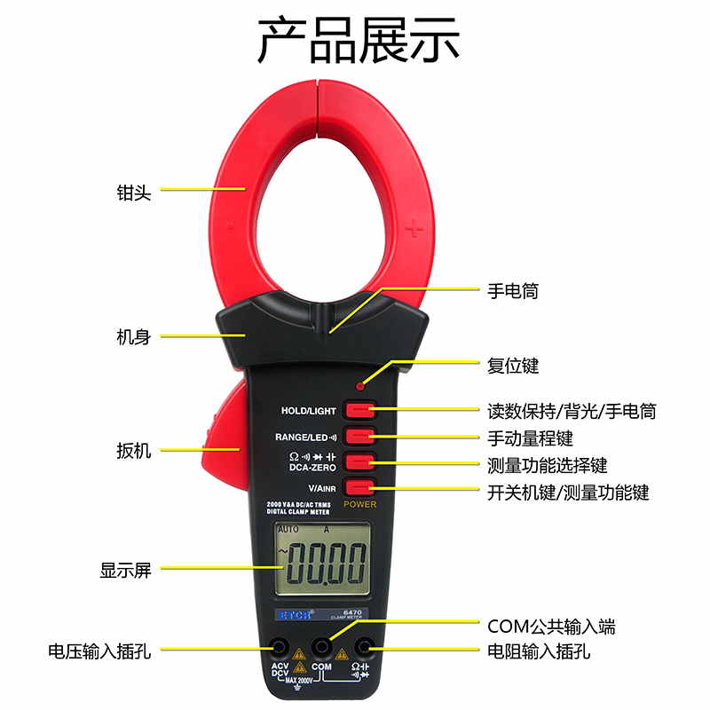 ETCR6470鉗形萬用表結構精巧、操作容易、攜帶方便,是電氣測量之理想工具。尤其適用于測量大電流和啟動電流的場合。