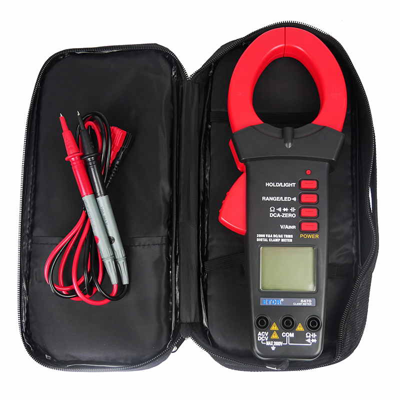 ETCR6470鉗形萬用表又稱多功能鉗形電流表,是一款能測量最大交直流2000V電壓和交流2000A電流的三位半便攜式數(shù)字鉗形表。它整機電路設計以新型專用MCU為核心,全功能有過載保護,保護儀表不被燒壞。儀表采用按鍵式功能切換,具備高可靠性、高安全性、自動量程等特點。具有大屏幕數(shù)字,數(shù)據(jù)保持、欠壓提示、自動關機功能,真有效值測量能準確測量變頻電壓,非正弦波電壓,浪涌電流能測量周期為80mS的浪涌電流有效值,適合測量大型電機、壓縮機啟動電流。它可測量交流電流、交/直流電壓、電阻、電容、通斷測試、二極管正向壓降、LED工作電壓等參數(shù)。