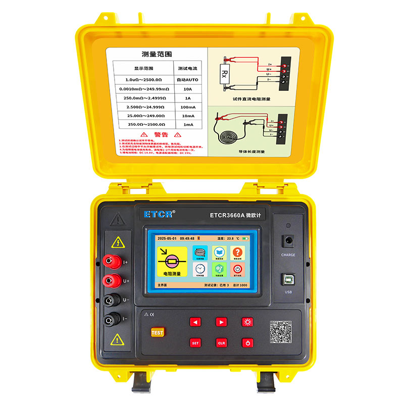 | ETCR3660A微歐計(jì) | 1.0uΩ~2500.0Ω | 0.1uΩ | 10A | 觸摸彩屏 | 1000組 | 鋰電池 |
