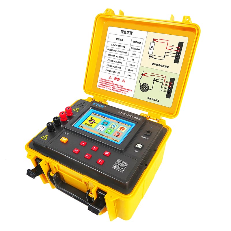 ETCR3660A微歐計(jì)又稱直流電阻測試儀、直流低值電阻測試儀,儀表采用微處理機(jī)技術(shù),精密四線法測試,準(zhǔn)確可靠。主要用于測量小型變壓器繞組電阻;接地導(dǎo)通電阻;電纜導(dǎo)線電阻;開關(guān)、接插件、繼電器的接觸電阻;金屬鉚接電阻;線圈、電動(dòng)機(jī)、互感器繞組電阻;金屬構(gòu)件之間聯(lián)結(jié)電阻;電焊接點(diǎn)電阻;蓄電池并聯(lián)連接電阻;以及導(dǎo)線長度測量計(jì)算等。儀表外殼采用防水保護(hù)箱,防撞、防摔、防水(防護(hù)等級(jí)IP65)堅(jiān)固安全耐用,儀表還配有大容量可充電鋰電池組,特別適合在戶外工地使用。廣泛應(yīng)用于建筑質(zhì)檢站、監(jiān)理公司、建筑施工單位、防雷公司、電力部門、船舶機(jī)車廠等。