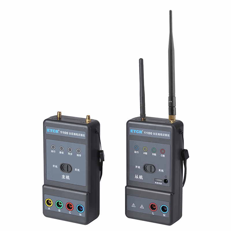 ETCR1100臺區(qū)相線識別儀由主機(jī)、從機(jī)、RF天線、測試線組成。通過衛(wèi)星通信等新技術(shù)手段,能快速準(zhǔn)確識別同一臺區(qū)距離較遠(yuǎn)的線路兩點(diǎn)各相線相別是否一致。儀表通訊距離遠(yuǎn)(最大可達(dá)8公里)臺區(qū)全覆蓋,即便城區(qū)建筑物密集臺區(qū)也能快速判斷相線,儀表操作簡易,準(zhǔn)確直觀,體積小攜帶方便、安全快速,廣泛應(yīng)用于電纜施工、設(shè)備安裝、線路維護(hù)工作,特別適合三相不平衡治理裝置安裝施工使用。