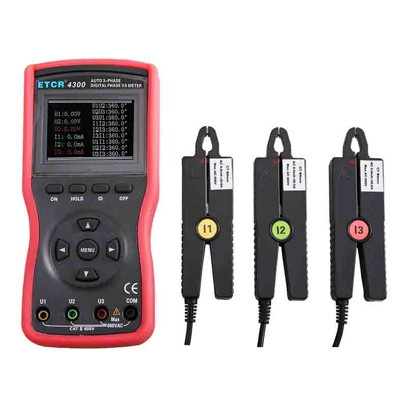 ETCR4300三相數(shù)字相位伏安表Φ8mm0~360°0.00V~600V0.0mA~20.0A0.0W~12kW--
