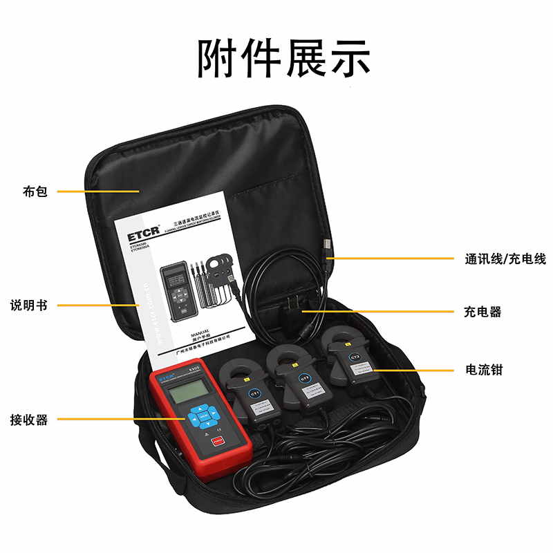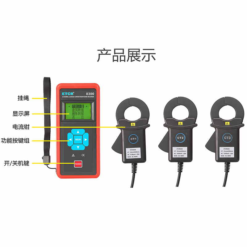 ETCR8300三路鉗形漏電流記錄儀Φ30mmAC 0.00mA~20A7天1秒-99分鐘20萬組鋰電池
