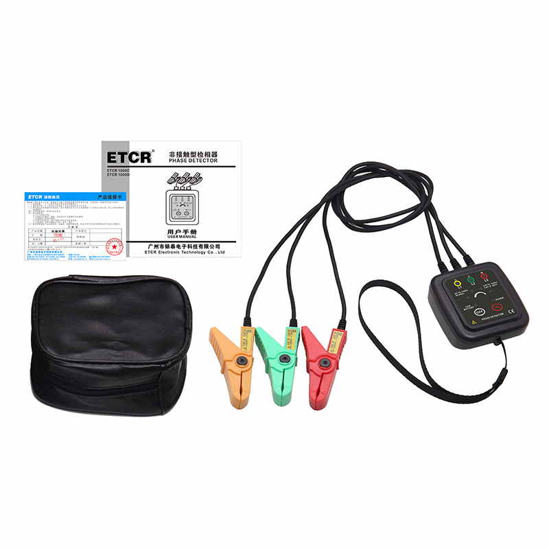 ETCR1000C非接觸型檢相器又稱非接觸相序表、相序檢測(cè)儀、電機(jī)三相檢測(cè)儀、相序測(cè)試儀、馬達(dá)轉(zhuǎn)向測(cè)試儀,用于相序檢測(cè)(正相、逆相、缺相)、活線檢查、簡(jiǎn)易檢電、火線識(shí)別、缺相判斷、斷線位置查找、線路檢修。
