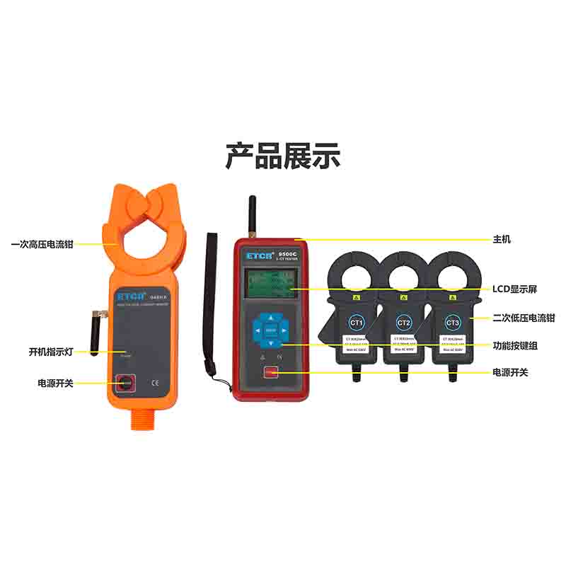 ETCR9500C-030無線高壓CT變比測試儀又稱互感器電流變比測試儀、互感器比差測試儀、電流互感器變比測試儀,用于35kV以下電流互感器的一次電流、二次電流大小、變比,相別、極性判斷。儀器采用3個二次低壓電流鉗(口徑25mm×30mm)同時測試低壓線路,可直接確定高壓端與低壓端的對應(yīng)相位關(guān)系,無需多次鉗測。廣泛應(yīng)用于變電站﹑發(fā)電廠﹑電力稽查部門、工礦企業(yè)以及檢測站﹑電工維修部門進行電流檢測、反竊電及野外電工作業(yè)等。