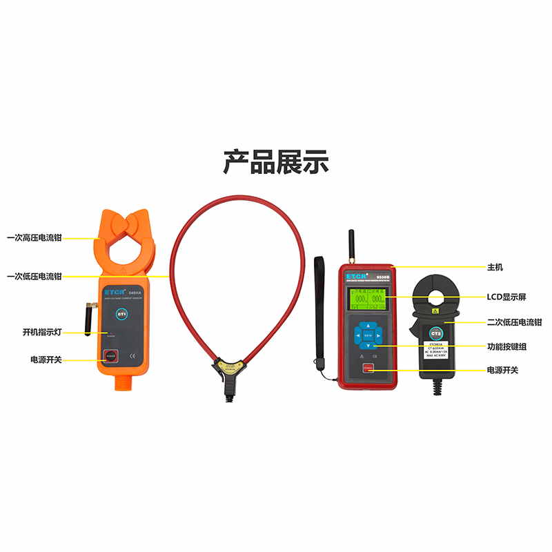 ETCR9500B無線高低壓CT變比測試儀≤35kV0.0A ~800A0.0mA~5A100m1~9999--