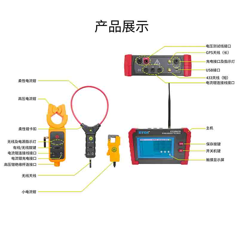 ETCR9570無線高低壓CT變比測試儀≤35kV0.0A~800A/3000A0.0mA~10A100m1~9999諧波/電壓/功率測量、藍(lán)牙