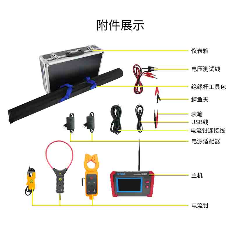 電池電壓主機(jī)電池電量顯示,電池電壓低于10%時(shí)提醒及時(shí)充電;柔性電流鉗和高壓電流鉗電池電壓低于10%時(shí)指示燈亮起