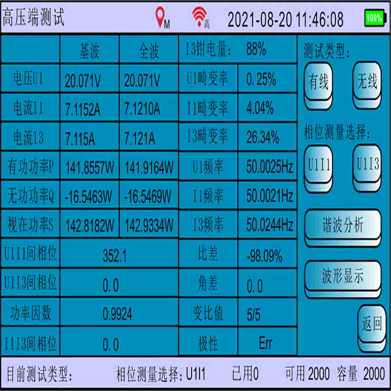 1、功能完善,可測量高低壓電流互感器變比。還能測量電力系統(tǒng)的電壓、電流、漏電流、相位、頻率、有功功率、無功功率、功率因數(shù)、諧波等電力參數(shù)。